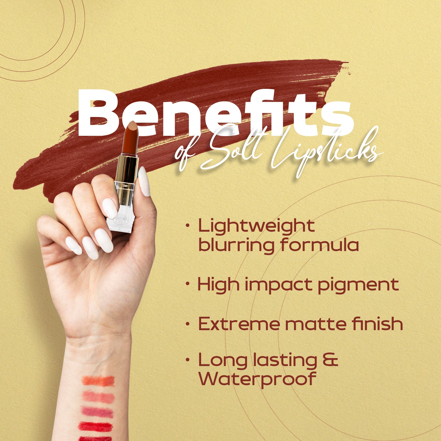 Choosing Solt Cosmetics for Gold Tube Lipstick in Ahmedabad, Gujarat, and across India means choosing quality, comfort, and style all in one. Our lipstick is crafted with care using gentle ingredients that suit all skin types. We make sure each Gold Tube Lipstick delivers smooth texture, rich color, and long-lasting wear without drying out your lips.