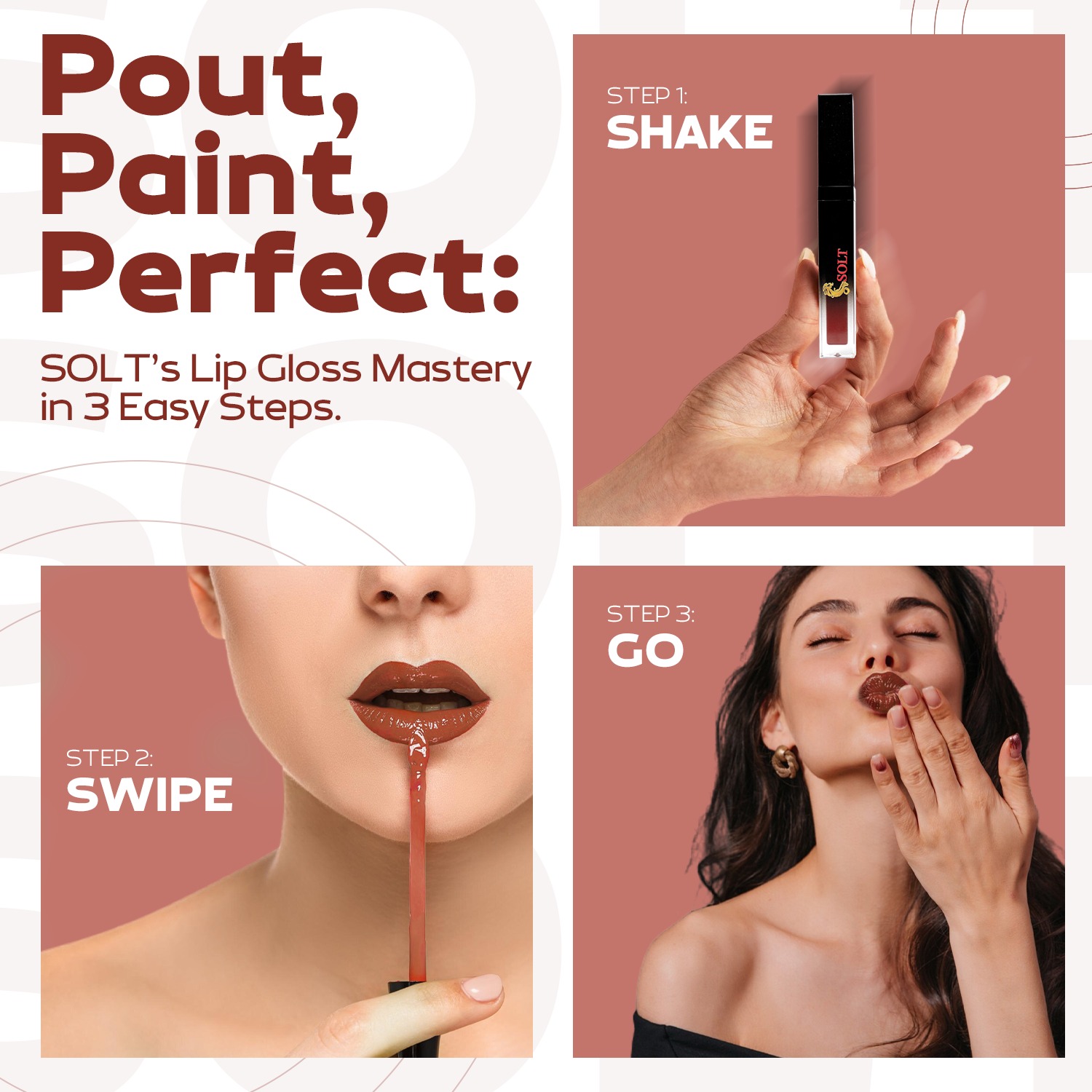 Whether you’re at work, attending events, or just enjoying a casual outing, our lipstick lipgloss adds a bold and polished touch to your look. It is easy to apply, lightweight, and doesn’t dry out your lips, which makes it perfect for regular use. At Solt Cosmetics, we use clean and safe ingredients in every product. We know how important it is to feel good about what you apply to your skin.